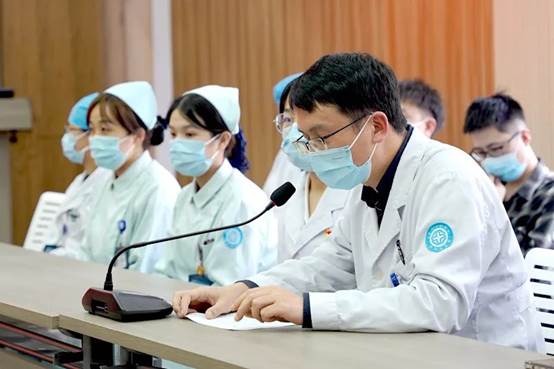 支援天台抗疫医疗队组长郑胜利发言,感谢队员们无惧风险,圆满完成支援任务,表示回到本职岗位后,将继续发扬伟大的抗疫精神,并肩作战再发力,全力护佑百姓健康。