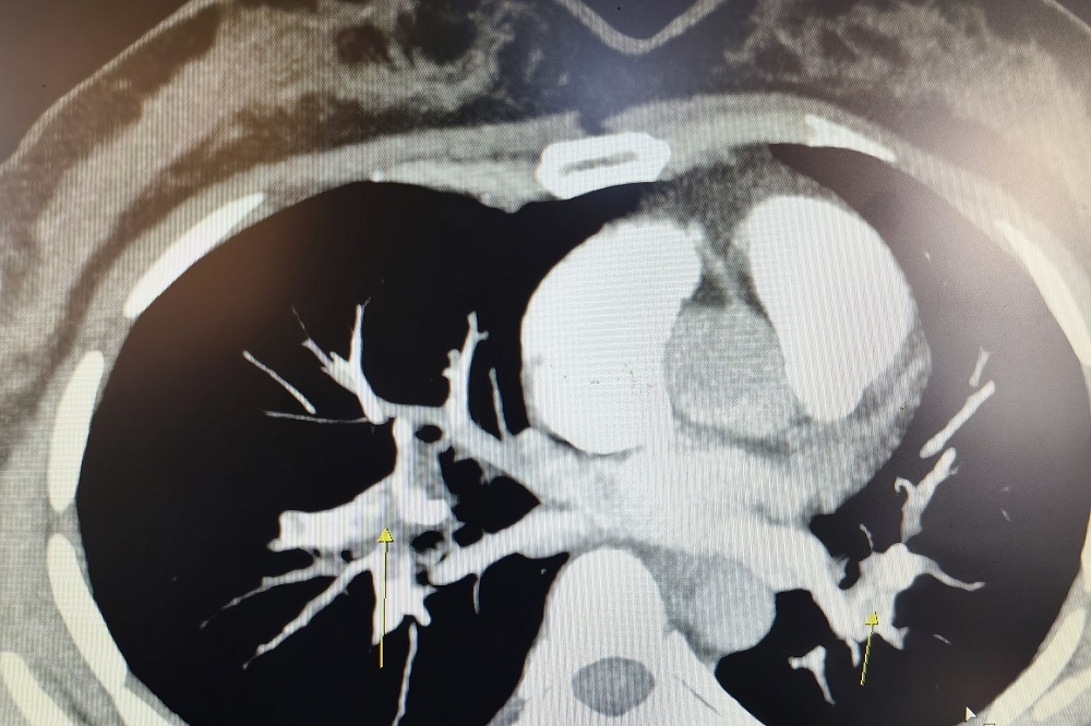 “急诊CT提示,患者肺部双侧与主干血管均有不同程度的栓塞,我们立刻采取了吸氧、抗凝等治疗。”台州玉环市人民医院呼吸与危重症医学科主治医师王剑解释,彭女士是因久坐导致下肢深静脉血栓,引起急性肺栓塞、呼吸衰竭。