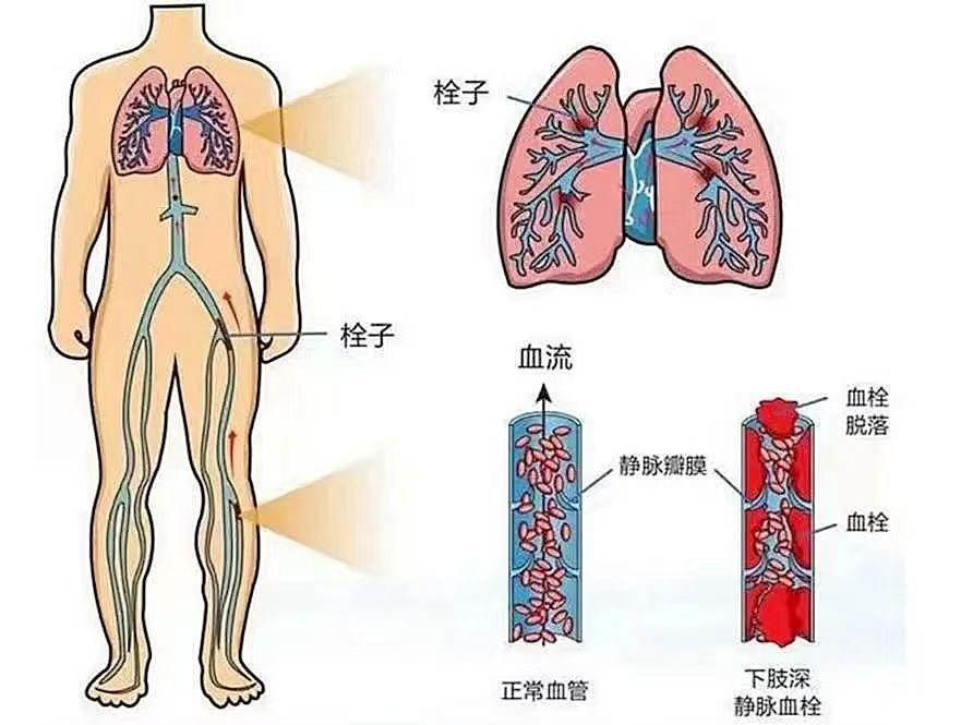 一旦久坐后立即开始活动,那些脱落的血栓便会顺着血流循环一路“闯荡”,先回流至心脏,然后抵达肺部。而肺内的血管是越分越细的,血栓最终就会卡在肺部血管,导致肺栓塞。此时,肺里参与氧气交换的血液大幅减少,身体会严重缺氧,患者就会出现呼吸困难、咳嗽、胸痛等紧急症状,严重的甚至会因呼吸衰竭而死亡。