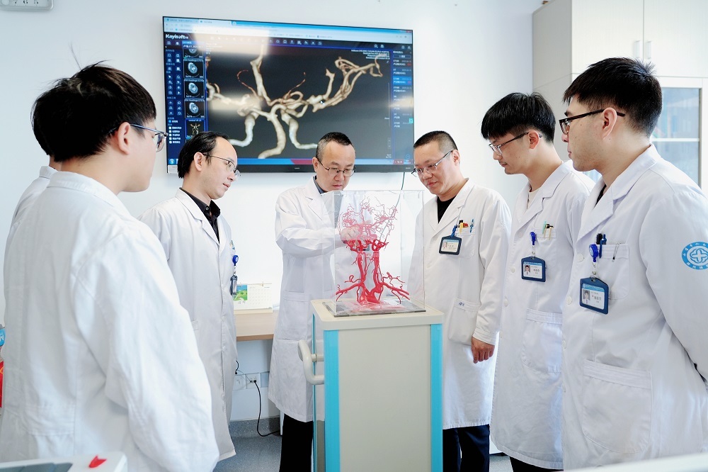 “急性脑梗就是与死神赛跑,等吃完饭就来不及了!”曾怀文当即放下碗筷,以最快的速度赶往医院。在手术室里,他娴熟地为患者实施了脑血管造影术和经皮颅内动脉取栓术。经过争分夺秒的抢救,两天后患者语言功能恢复,四肢肌力也逐渐恢复正常。