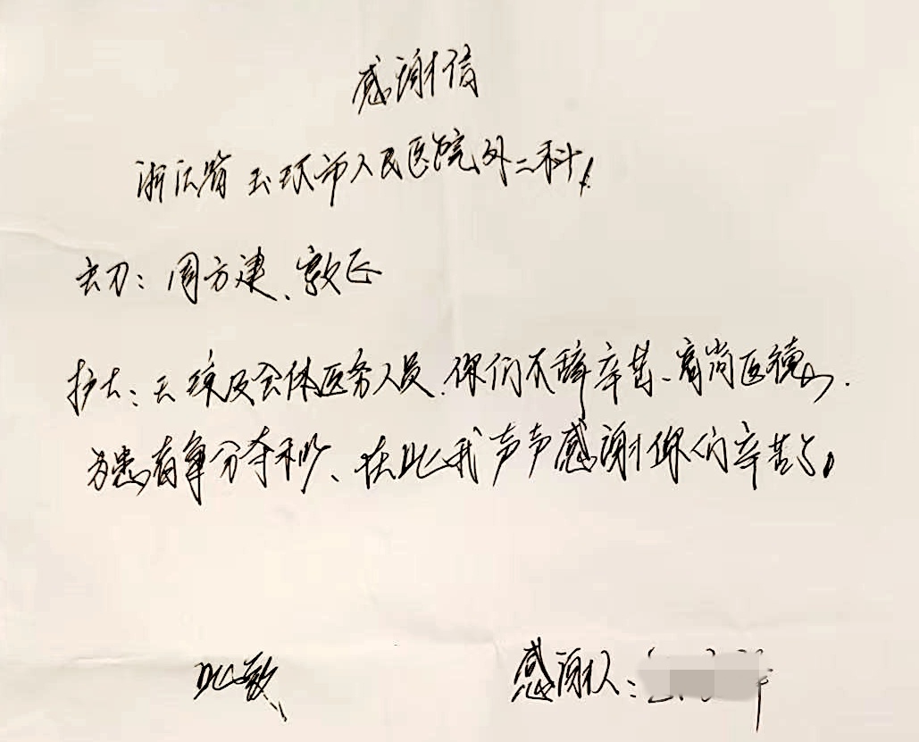 术后次日老刘即能正常进食交谈,出院后特致感谢信表达对医护团队的感激。医生提醒公众,如遇异物刺入身体,切勿自行拔出,应保持异物原位不动并立即拨打急救电话,由专业人员处置,以免造成二次伤害或大出血。