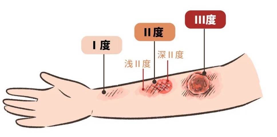 烧烫伤一般为“三度四分”:I度、浅Ⅱ度、深Ⅱ度和Ⅲ度。低温烫伤不仅可以导致I度、浅Ⅱ度这样相对浅度的损伤,也有可能造成深Ⅱ度或Ⅲ度的深度烧伤。