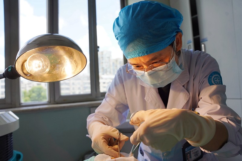 8月15日原本是叶建英的休息日,她却约了十多位需要复查的病人来院。诊室内,她一边为患者仔细诊查,一边细细叮嘱着康复注意事项,耐心得像对待熟稔的朋友。