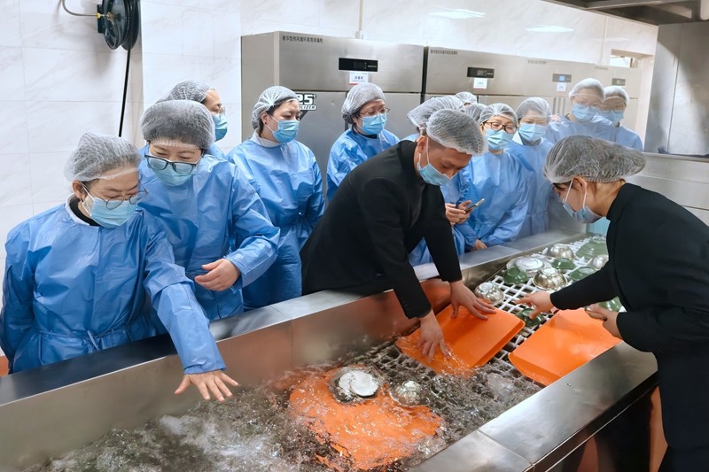 当天,参观人员就食堂目前的运营情况及职工反馈的意见,与食堂运营团队展开了交流,并实地走访查看了加工间、库房、洗碗间等功能区域。食堂经理系统介绍了日常管理规范、消毒配套设施、菜品制作流程、餐具清洁消毒及配餐送餐安排等各个环节。