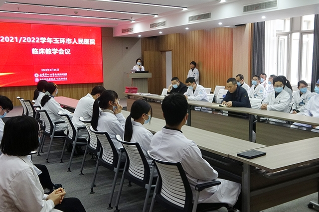 1月25日下午,我院在学术报告厅组织召开2022年教学会议,总结医院一年来的教学工作成绩,剖析2022年教学工作新任务与新挑战,并对临床实习生技能大赛优秀选手进行表彰。会议由我院常务副院长冯建武主持,各科教研室主任、临床科室主任、教学秘书、教学组长及21名温州医科大学临床实习同学等参加。会上,科教科副科长王爱芳作2021年教学督查反馈,总结玉环市人民医院临床教学质量考核情况与各个教研室教学工作亮点...