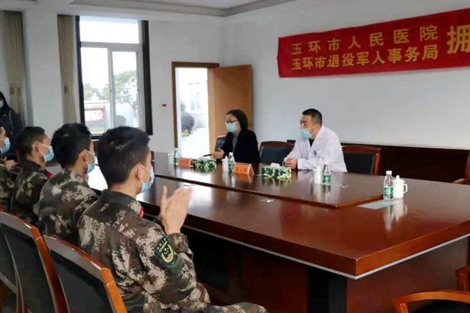12月13日下午,我院联合市退役军人事务局相关工作人员一同来到武警玉环中队,开展拥军义诊活动,积极支持军队建设,着力维护部队官兵身体健康。活动中,我院关节、创伤外科主任陈文辉为官兵们讲解了健康保健常识及日常训练等注意事项,现场为每个官兵提供一对一问诊服务,详细解答他们的病症问题并给出治疗方案。官兵们纷纷表示,这次的义诊活动给他们提供了很大的帮助。因为平时训练多,或多或少会有一些伤病,有了专业医护人...