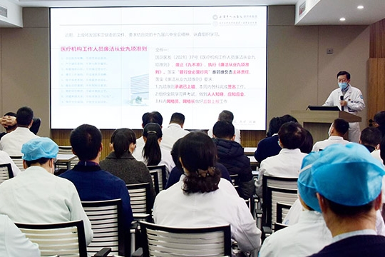 为进一步加强医院行风建设和廉政建设,12月13日下午,我院召开贯彻落实国家卫计委要求的“九项准则”工作落实会,严肃行业纪律,规范医疗行为,促进依法执业、廉洁行医。全院中层以上干部参加。会上,党委书记陈增瑞逐条解读了《医疗机构工作人员廉洁从业九项准则》,重点阐述其要义,并部署“九项准则”进科室的相关工作任务。一是广泛开展学习宣传,各科室要认真组织科内人员开展学习和讨论,深刻领会“九项准则”的重要意义...