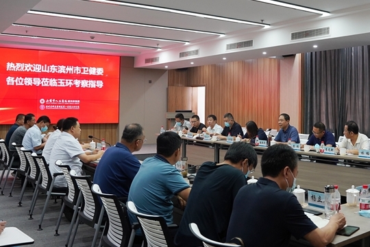 9月24日,山东省滨州市卫健委考察团一行22人莅临玉环,调研学习医防融合慢病管理经验做法。玉环市人民医院健共体集团院长董寅、副院长徐金女等陪同。当天上午,考察团一行在徐金女副院长带领下,先后参观了集团总院门诊大厅、区域影像中心、检验中心、心电中心、MMC中心等部门,实地了解集团管理情况,并在三楼学术报告厅召开座谈会。会上,董寅院长以《基层卫生在浙江的改革》为题,详细介绍了集团慢病管理经验,并演示“...