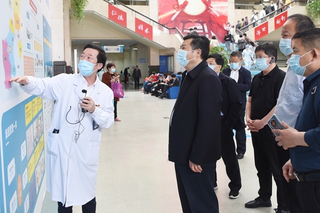 4月23日上午,由济南市卫健委党组成员、副主任米宽庆带队的济南济阳区考察团,一行六人莅临我院,调研交流县域健共体建设工作。市卫健局党工委书记、局长王必胜等领导陪同。当天,我院党委书记陈增瑞带领考察团参观医院门诊大厅、检验中心、区域影像中心、MMC中心等重点科室,实地了解健共体工作机制。我院院长董寅则在座谈会上做工作汇报,介绍我院健共体运营情况,并演示“三医联动六医统筹”信息化集成平台。双方就健共体...