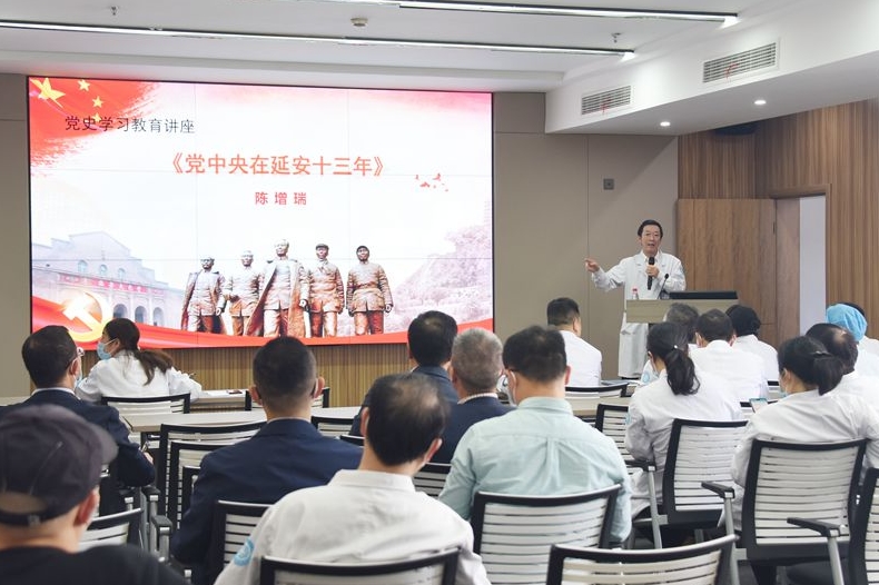 4月21日下午,玉环市人民医院健共体集团党委举行党史学习教育延安精神宣讲会。集团党政班子成员、职能科科长、各党支部书记,各分院班子成员、党(总)支部书记到会聆听。会议由集团党委副书记、副院长杨善浦主持。集团党委书记陈增瑞以《党中央在延安十三年》为题,从长征为什么选择陕北作为革命根据地、为什么延安能胜利,什么是延安的精神等三方面进行阐述。指出在全党集中开展党史学习教育,正当其时、恰逢其势、意义深远。...