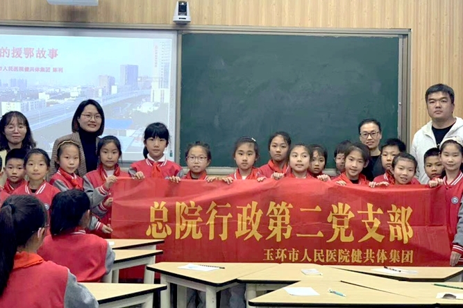3月31日下午,行政第二党支部应环山小学天河校区老师邀请,结合“四史”学习教育,为同学们带去《你的故事我的力量》专题分享故事会,促进广大青少年不忘历史、不忘初心,知史爱党、知史爱国,坚定信念。分享会以班会课的形式在三年级3班举行,同时其余班学生通过钉钉直播的方式观看。会上,援鄂护士陈利首先未同学们介绍口罩的正确佩戴方法和规范的七步洗手法。希望同学们在生活中能够正确的使用口罩,正确的洗手,达到有效防...
