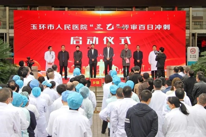 2月23日下午玉环市人民医院“三乙”评审百日冲刺活动正式启动正式吹响了创建三级乙等综合医院目标攻坚奋进的号角,标志着医院创“三乙”工作从全面实施阶段进入百日冲刺阶段。市领导杨良强、陈康、吴玲芝出席活动,市卫健局、市医保局、市人民医院健共体集团辖区乡镇与部门相关领导、集团中层以上干部参加会议。市府办副主任袁新峰主持会议。启动仪式上,集团医生、护士代表及党委书记陈增瑞作工作表态,医院将坚定信心,锚定目...