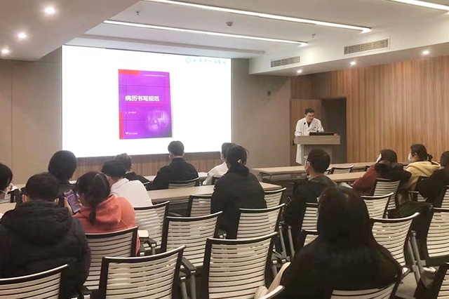 为进一步规范全院病历书写,切实提高医院医疗质量管理水平及医务人员基本技能,12月8日晚,我院质管科在三楼学术厅开展病历书写规范培训。此次培训对象范围涉及全院医生,其中,2020年规培回院医生在现场学习,其余医生通过钉钉观看直播。培训中,质管科副科长沈仁分别从病历书写的一般要求、入院记录、日常病程记录等多方面,向大家作了深入浅出、丰富详实的讲解,并结合我院病历书写实际情况进行了详细的分析。规范书写病...