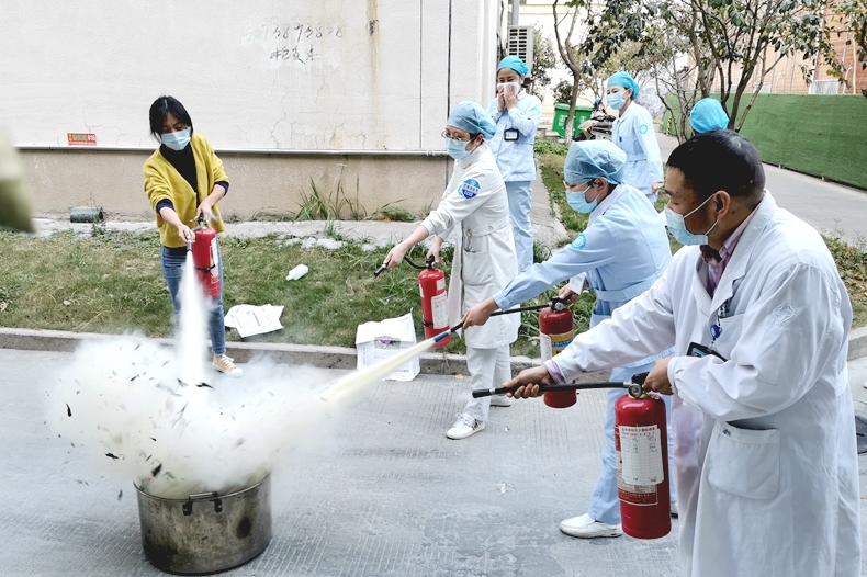 为强化职工消防安全意识,提升火灾发生时的应急处置能力,避免人员伤亡和财产损失。11月11日下午,消化泌尿科联合骨二科,血透室开展消防应急演练。演练开始前,首先由安保人员进行消防安全知识讲解,医务人员进行现场操作。“喂,住院部一楼一区消化泌尿科12床着火了,火势较大,请求支援,启动111”。值班护士发现火情后马上拨打急救电话,并按下手工报警按钮,当班医生熟练地按照灭火步骤和方法将浓烟大火成功扑灭。火...