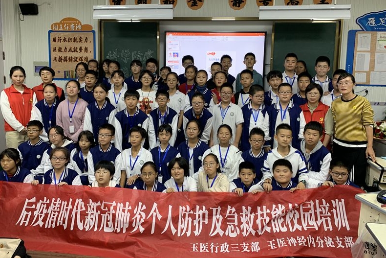 近日,行政第三党支部联合神经内分泌科党支部受邀来到城关一中,为七年级6班同学们开展新冠肺炎个人防护及急救技能知识培训课。课上,援鄂英雄吴赛丽在《校园防疫小讲堂》中,结合抗疫经验讲解防疫正确方法,强调同学们做好防护,是对自己负责,也是对家人和学校负责。我们每个人既是自己健康的责任人,也是他人健康的守护者。疫情面前,大家必须做到戴口罩、勤洗手、多通风、少聚集。活动中,吴赛丽还为同学们讲述了驰援湖北武汉...