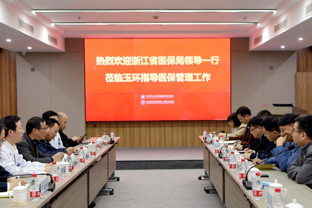 11月5日下午,浙江省医保局一行9人莅临我院指导医保管理工作。集团院长董寅从医保费用控制、医保支付方式改革、药品耗材的集中招标采购、医保基金监管、互联网+医保、医保+商报、参保人员满意度七个方面,汇报集团如何做好医保精细化管理,并现场演示集团“三医联动六医统筹”信息化集成平台。玉环市医保局领导、我院班子领导等陪同。