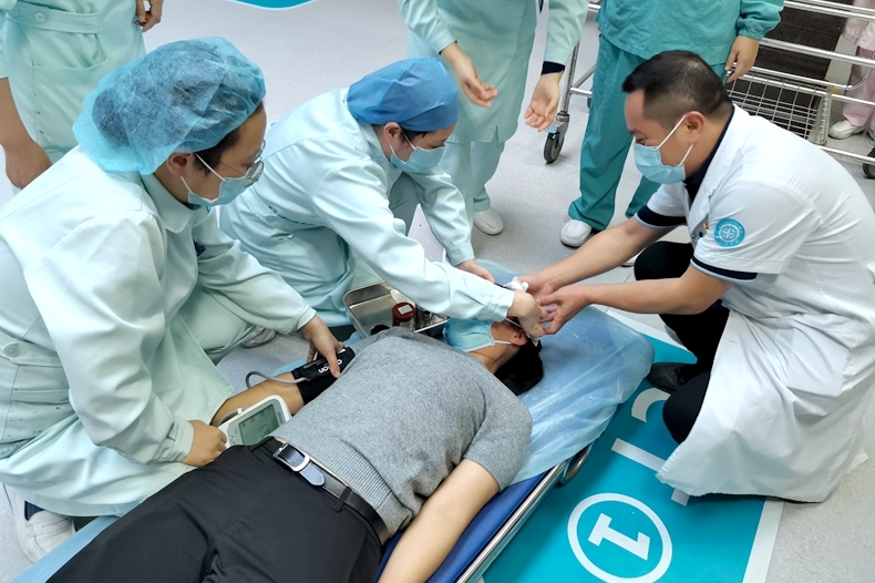 为了规范和强化医护人员应对突发事件的应急能力和保障患者安全,9月28日晚,放射科开展了门诊患者跌倒坠床事件应急演练。演练由放射科主任赵顺标和护士长杨芳霞主持。演练模拟了患者在完成CT检查走出机房时突然摔倒,头部着地,家属高声呼救。护士立即对患者制动后进行生命体征和伤情评估,发现头皮裂伤并通知医生进行包扎处理。包扎后,医生检查患者身体其余部位有无受伤情况,包括外形、活动、功能有无改变,同时安抚患者及...