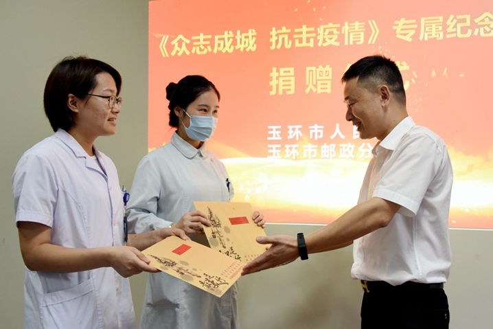 “你们是英雄,感谢你们逆行出征,守护山河!”日前,玉环邮政分公司组织工作人员将《众志成城抗击疫情》专属定制邮折送到了我院援鄂护士陈利、吴赛丽手中,用特殊方式向英雄们致敬。据了解,此次捐赠的《众志成城抗击疫情》定制邮折内含《众志成城抗击疫情》邮票大版、娟质首日封和特质的个人肖像“抗疫”纪念张,每个邮折都是唯一编码,邮票编码同首日封编码相同,具有十分特殊的纪念意义。《众志成城抗击疫情》邮票于5月11日...