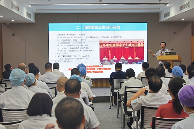 统一部署全院动员落实责任对标对表扎实开展各项创卫工作全力争创全国卫生城市国家卫生城市,是一个城市综合功能和文明程度的重要标志。自玉环市吹响创建国家卫生城市的号角后,玉环市人民医院按照上级统一部署,结合医院实际,全力以赴推进创建国家卫生城市各项工作,全力提升医院环境卫生质量,营造清洁、卫生的就医环境。9月2日上午,医院召开创建国家卫生城市迎检工作部署会。会议要求各职能科要根据各自的分工,对照国卫标准...