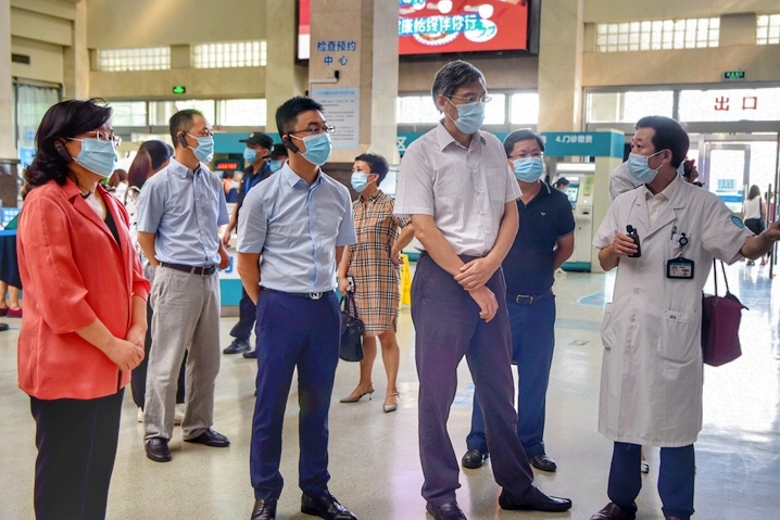 【参观门诊大厅】【党委书记陈增瑞介绍医院健共体工作概况】【参观影像中心】【院党委副书记、院长董寅介绍健共体信息化软件】8月26日上午,省人大教科文卫委员会副主任委员田宇原一行来院调研健共体建设工作,先后走访了门诊大厅、影像中心和远程会诊中心,重点了解了健共体集团信息化建设。玉环市副市长王超,市卫健局党工委书记、局长王必胜,我院班子领导等陪同调研。