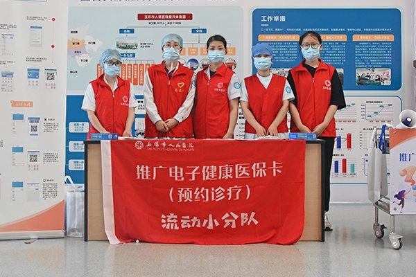 为推广电子医保卡的申领和绑定,进一步方便患者挂号就医。8月15日上午,门诊党支部党员志愿者身穿红色马甲,组成流动小分队,一路人员在门诊大厅“摆地摊”,一路推着流动小车,活跃在人群中,向过往的市民介绍电子医保卡的申领、绑定以及功能,引来许多民众围观。活动中,志愿者们帮助市民当场领取,并派送小礼物进一步加大宣传。据了解,电子健康卡集多项功能于一体,可以实现无就诊卡预约、签到、就诊、缴费、查询报告等多项...