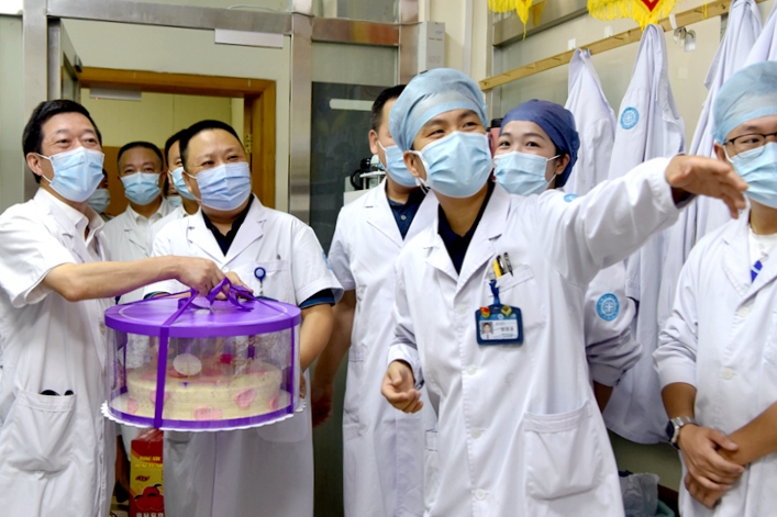 弘扬抗疫精神,护佑人民健康。8月19日早上,在第三个中国医师节这一盛大的节日里,我院党委书记陈增瑞,党委副书记、院长董寅率领班子成员走访各科亲切慰问,带着精心准备的蛋糕和水果,向奋战在一线的医生们致以节日问候。专属节日里的惊喜和感动,镜头下记录最暖“医”瞬间:开心之余,各科人员纷纷合影留念:找不到不为你赞叹的理由,你是那样温柔。找不到不为你鼓掌的理由,你是那样敬业。找不到不为你喝彩的理由,你是那样...