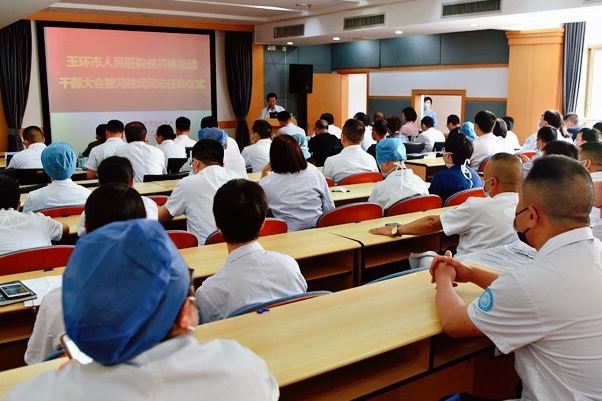6月1日下午,我院(温州医科大学附属第一医院玉环分院)在三楼学术报告厅举行“玉环市人民医院健共体集团干部大会暨冯建武同志任命仪式”,温医大附一院派驻我院的江松福同志卸任常务副院长一职,由温医大附一院冯建武同志接任。玉环市政府副市长王超、温医大附一院副院长王美豪、玉环市卫健局党工委副书记林金玉出席会议。会议由集团党委书记、院长陈增瑞主持,全院中层干部共同见证历史性一刻。会上,温医大附一院组织人事处副...