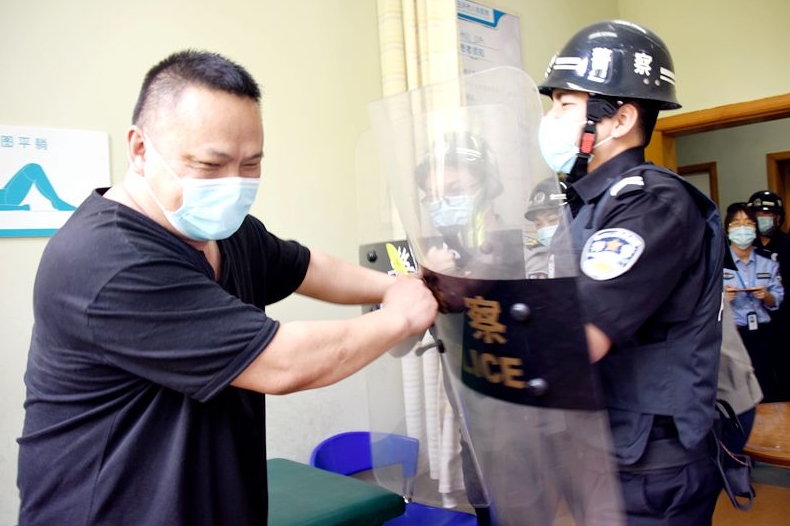 为加强医院安保工作,强化安保人员应对突发事件及反恐防恐能力,5月13日下午,保卫科邀请玉城派出所民警张杰对安保人员了进行反恐防暴技能培训。保卫科30余名队员参加了此次培训会。培训现场,张警官为安保人员系统培训了防护钢叉、抓捕器、盾牌、警棍、辣椒喷剂等反恐防暴器材的结构特点、工作原理、使用方法和操作要领。同时,针对日常巡逻工作中可能出现的突发事件应急处理方法作了详细的指导,现场模拟演练了如盾牌和警棍...