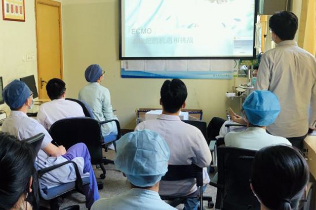 ECMO即体外膜肺氧合(ExtraCorporealMembraneOxygenation),对于潜在可复性、威胁生命的、传统治疗效果不佳的呼吸、循环衰竭,可全部或部分代替心肺功能,以争取心肺病变治愈及功能恢复的时间。为提供更好的救治保障,挽救患者性命,我院将是玉环首家引进ECMO技术的医院,进一步推动科研技术发展。日前,ECMO专业技术人员来我院对ICU医护人员进行ECMO专业知识的简要现场指导...