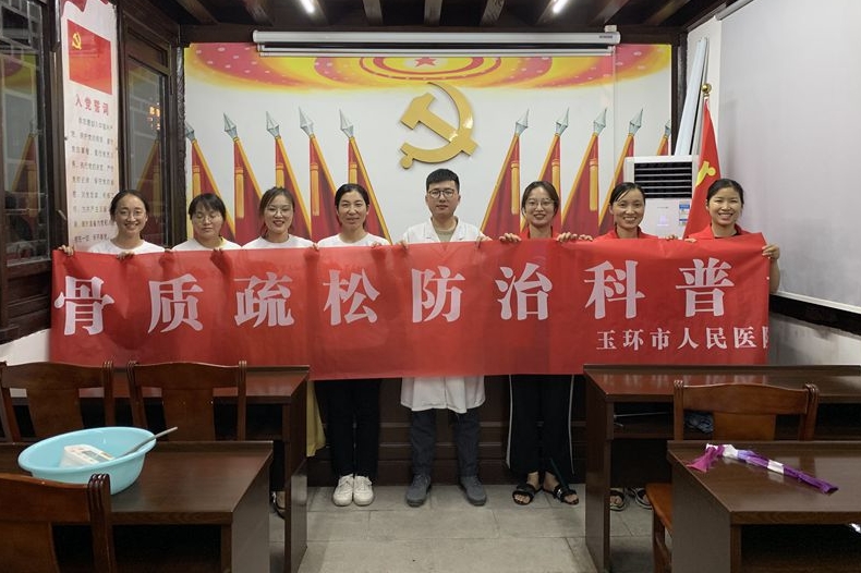 为科普骨质疏松症防治知识,加强群众对疾病的认识。9月17日晚,玉环市人民医院健共体集团总院外一、外二支部与芦浦分院党员来到芦浦西塘村文化礼堂,为该村村民进行《骨质疏松症的健康宣教》的专题讲座。活动中,我院骨科徐嘉烈医师就骨质疏松症的病因、症状、好发人群、预防及治疗等内容作了详细的介绍。由于到场的大多为老年人,医生还首次尝试用方言为民众讲课。其通俗易懂的语言,深入浅出的讲解,赢得了阵阵掌声。讲座结束...