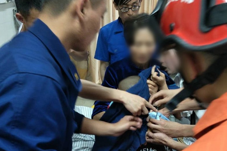 当天下午2点左右,一位奶奶和年轻妈妈抱着一名2岁的男孩冲进了玉环市人民医院急诊科。原来,孩子的手指卡在了削皮刀里无法动弹,都说十指连心,这手指一旦受伤,很多成年人都会觉得疼痛难忍,更别说孩子了。由于削皮刀刀刃是往外开的,如果把手硬往回拉,孩子手指会被划破,并且孩子当时的情绪很不稳定,一直哭闹不止,情况紧急,急诊骨科医生在查看情况后,紧急联系消防中队,消防员到达现场后立即制定了施救方法。在确保孩子手...