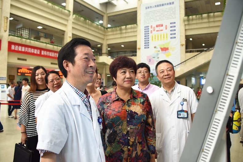 6月19日上午,台州市卫生健康委副主任马美莉一行来我院调研卫生健康工作,市卫健局领导及我院相关领导陪同调研。马美莉一行先后参观我院门诊大厅、区域影像中心和健共体集中办公区域,就最多跑一次改革、健共体相关建设等进展情况进行了详细了解。在座谈会上,玉环市人民医院健共体集团党委书记、院长陈增瑞简要介绍玉环市人民医院健共体集团的组织架构和运作情况,详细汇报玉医健共体的改革成效,重点介绍健共体党建、学科建设...