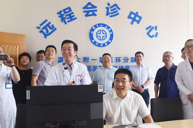 6月5日上午,台州市卫生健康委党委书记、主任应正南一行莅临我院调研健共体建设工作情况。市卫健局局长王必胜,我院党委书记、院长陈增瑞等相关工作负责人陪同。调研中,应正南实地走访参观了医院健共体区域影像中心、远程会诊中心、“一办九部”集中办公区域,深入了解市人民医院健共体运作成效。当天,应正南对于医院健共体工作给予了肯定,并就发现的问题提出了改进意见。他指出,健共体集团要真正树立“一家人”理念,进一步...