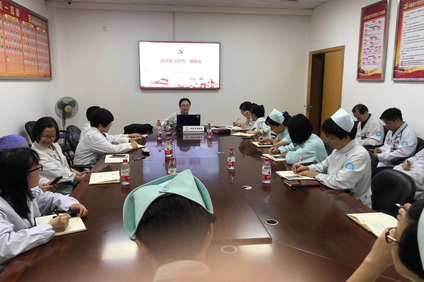 6月3日晚,玉环市人民医院健共体集团党委总院各支部积极开展6月份主题党日活动,会前严格落实戴党徽、交党费、过政治生日等规定动作。外科第二党支部学习《党章电视辅导教材》第二集《共产党员》、学时政等规定动作。支部书记林素琴带领大家认真学习贯彻《中共中央关于加强党的政治建设的意见》、《中国共产党党员教育管理工作条例》。学习《关于国家卫生健康委纠正医药购销领域和医疗服务不正之风工作的会议》视频。传达学习市...