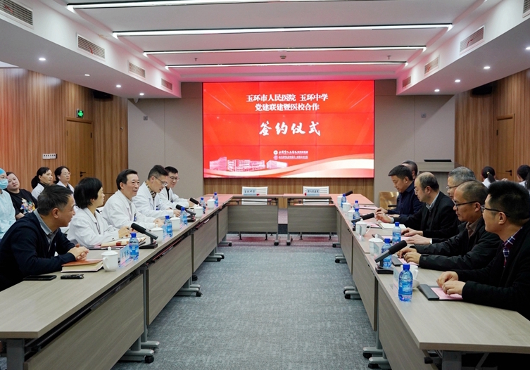 党建联建聚合力医校携手谱新篇1月16日下午,玉环市人民医院与玉环中学党建联建暨医校合作签约仪式隆重举行。双方以党建为纽带,搭建资源共享、协同发展的合作平台,构建“预防-诊疗-康复-促进”全链条校园健康服务体系,为提升师生健康福祉、助力“健康玉环”建设注入新动能。玉环中学领导、玉环市人民医院班子成员、各职能部门主任及党支部书记出席仪式,仪式由玉环市人民医院健共体集团党委副书记、副院长周朝阳主持。致辞...