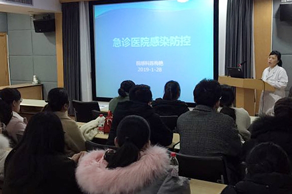 1月28日晚,正是小年夜,我院急诊科未上班人员放弃休息时间,齐聚三楼学术厅,共同学习“医院急诊感染防控”知识。培训由院感科科长陈梅艳主讲,培训内容涵盖“三乙”医院建设的院感质控要求、多种耐药性病菌防控等。她表示,医务人员应从自身防护做起,加强无菌操作概念,注意手卫生、口罩佩戴等规范。陈科长特别指出,当前流感高发,大家要加强急诊大厅的空气消毒管理,做好对疑似流感病人口罩发放与“咳嗽礼仪”的宣教工作。...