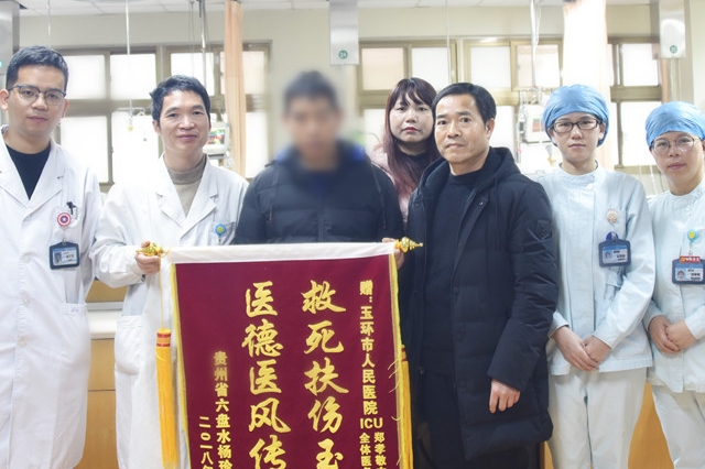12月10日上午9时许,我院ICU团队正在忙着查房诊疗时,意外迎来了一位特殊的“客人”。来自贵州的杨先生在家属陪同下,送来了一面“救死扶伤玉环院医德医风传四方”的锦旗,感谢ICU团队当时的精心救治。高处坠落命悬一线原来,去年11月5日,杨先生不慎从高处坠落,当即口鼻流血、神志不清。被送来医院时,全身十多处骨折损伤出血,已出现失血性休克,且有颅骨骨折引发的颅内出血、多发肋骨胸腰椎骨折导致的胸腹腔出血...