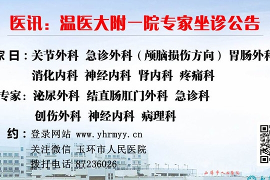 【义诊现场】【温医专家及我院专家在认真坐诊】10月16日上午,温医大校庆60周年大型巡诊(玉环站)在坎门中心卫生院拉开序幕。10多位常驻在玉环人民医院的温医大附一院专家“下沉”基层,携手市人民医院专家,在家门口向玉环市民提供内科、外科、妇科、骨科、儿科、五官科、皮肤科、疼痛科等十余个专科的免费义诊。上午8时许,坎门中心卫生院门诊一楼大厅内坐满了闻讯前来就诊的市民,专家们热情地接待每一位就诊患者,认...