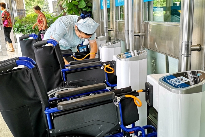 1382共享轮椅方便患者 手机扫码借还1小时免费