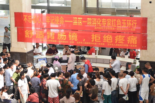 7月15日上午,虽然是周日,我院门诊大厅熙熙攘攘,不少市民拿着病历和报告单在导医台处排起了队。原来,是温医大附一院消化内科的专家受邀来院开展义诊活动。当天,我院麻醉科主任王充首先上了一堂《舒适胃肠镜拒绝疼痛》课,用浅显易懂的话语带领大家了解无痛内镜知识。随后,由8位医生、7位护士组成的温医专家团队赶到医院,为来往市民朋友排忧解难,并提供测血糖、量血压等服务。其中,陈坛辀主任还为四位预约并经筛查的患...