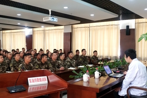 3月22日下午,应浙江海警东海特警集训队的邀请,内科第二党支部党员黄锡通、曾台文来到了大麦屿部队驻地为百余名官兵进行了“季节性传染病防治”和“常用急救技术”的讲座。通过幻灯片视频播放、模拟人操作并结合通俗易懂的讲解交流,大大地提高了部队官兵对于常见传染病和创伤的初步应急处置能力,受到了官兵们的热烈欢迎和一致好评。