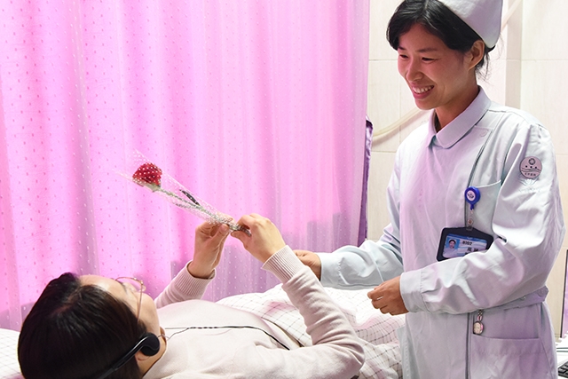 “节日快乐,这朵鲜花送给您,祝您早日康复!”3月8日上午,借着“三·八”妇女节的机会,产科医护人员手捧鲜花,为产科病区的女性同胞送上节日祝福。昨天刚顺利完成剖宫产手术的陈女士收到鲜花后十分感动,“谢谢你们,因为你们的笑容,我感觉伤口也没那么痛了。”除了向待产的准妈妈、产后的新妈妈赠送鲜花,产科医护人员也没忘了一旁陪护的产妇母亲们以及在产科工作的保洁、护工阿姨们,一一为她们送上了节日祝福。收到花后,...