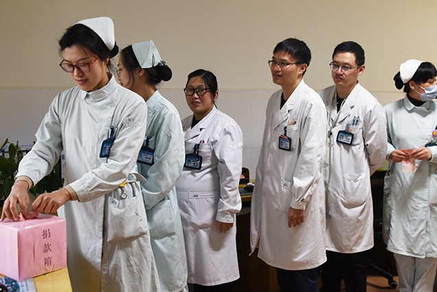 2月28日上午,儿科医护们在交完班后为困难患儿家庭自发组织了一场爱心捐款活动。在主任吴月超和护士长江斐的带领下,大家你两百我三百地陆续捐献,数额不多却饱含真心与诚意。事情要从十几天前说起,那天正是大年初四,来自贵州的一对小夫妇急匆匆地抱着3个月大的儿子前来医院救治。因为“捂热综合症”,孩子送来医院时面色发绀、血糖低,入院后又出现频繁抽搐和多脏器功能障碍,一度性命垂危。据了解,捂热综合症是儿科急症之...