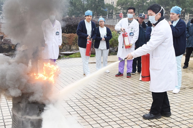 为认真贯彻落实“预防为主,防消结合”的消防工作方针,加强科室消防安全意识,1月31日上午,ICU在科室内组织开展消防演练。考虑到ICU科室的特殊性,演练当天模拟了微量泵电线起火。“起火”后,医护人员立即分工合作,有条不紊地完成了报警灭火、疏散人员、转移器械等工作。随后,保卫科保卫在后花园为大家讲解了干粉灭火器的使用方法。通过亲自尝试,科室人员进一步熟悉了消防器材的使用,提升了火灾处置能力。