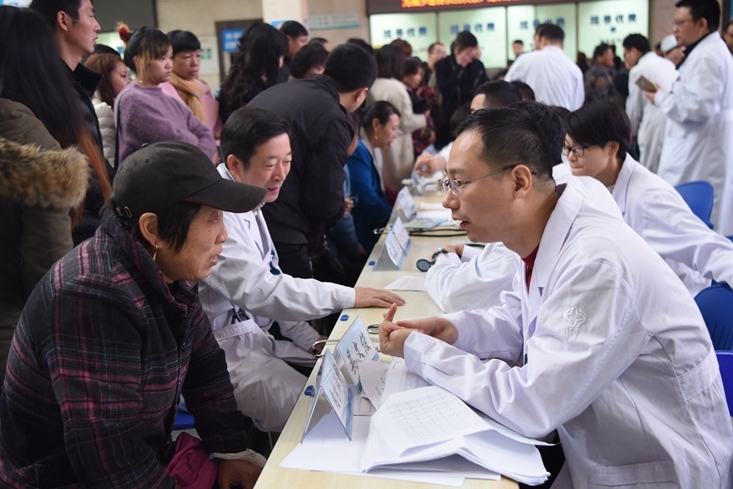 11月18日上午,我院门诊各候诊区门庭若市,一场由台州在杭青年联合会组织的医疗专家团返乡义诊活动正在此举行。来自浙江大学各附属医院的25名台州籍医学专家,怀着浓浓乡情,带着精湛医术在我院,为家乡父老义务看病、答疑解惑,五百多名群众闻讯赶来接受了专家的诊疗服务。当天上午,义诊现场慕名前来咨询及诊治的群众络绎不绝。专家们望、闻、问、切,为家乡百姓解答各种健康问题,给出治疗意见,共500多名群众接受了义...