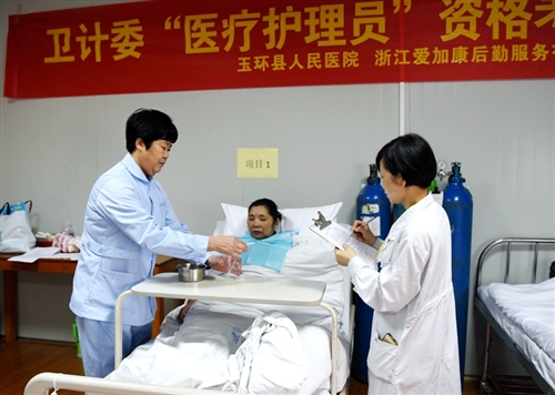 为有效提高医疗护理员的岗位技能,满足广大市民日益增长的生活质量、健康水平的需求,12月13日上午,我院联合浙江爱加康后勤服务有限公司在医院操作技能练习室举行卫计委“医疗护理员”资格考核,共有50余人参与。此次考核,评委由我院执有“国家职业技能鉴定考评员”的科教科主任林爱芳、护理部副主任林美爱和爱佳康后勤服务有限公司负责人王亚楠担任,内容包括“六步洗手法”、“喂食”、“普通患者会阴清洁”三项。本着公...