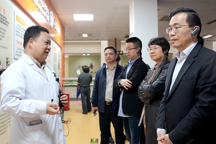 4月8日上午,台州市人大常委会党组副书记、副主任蒋冰风一行莅临我院调研,先后走访了医学影像中心、心电中心、MMC,查看医保DRG分析系统,重点了解医保工作开展情况。玉环市人大常委副主任陈伟鹰、副市长奚圣懂陪同调研。