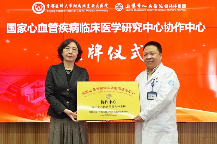 3月29日上午玉环市人民医院健共体集团首都医科大学附属北京安贞医院国家心血管疾病临床医学研究中心协作中心授牌仪式在医院三楼学术报告厅隆重举行我院牵手“国家级大咖”全力“救心救命”玉环百姓在“家门口”享受国内一流诊疗服务玉环心血管健康事业发展迎来新进程北京市心肺血管疾病研究所副所长刘静、首都医科大学附属北京安贞医院科技处副处长岳花兰、心律失常中心一病区副主任桑才华,副市长奚圣懂、市卫生健康局党工委副...