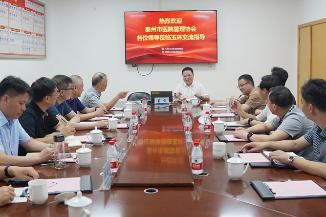7月20日上午,江苏省泰州市医院管理协会一行11人莅临我院,调研交流县域医共体建设与国家公立医院绩效考核。当天,在集团副院长陈孝敏带领下,考察团先后参观门诊大厅、影像中心、心电图中心、MMC医务社工部等部门,实地深入了解健共体运营模式。座谈会上,集团院长董寅汇报介绍了健共体集团建设工作概况,并围绕国家公立医院绩效考核等相关内容与考察团专家展开热烈讨论。