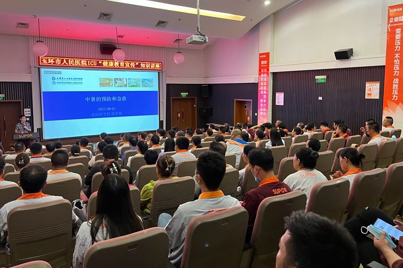 8月1日晚,ICU医护人员受邀来到大麦屿苏泊尔公司,为该企业员工开展关于中暑、热射病相关疾病的预防和紧急处理等知识培训。讲座吸引了近130余人聆听,现场互动热烈。持续高温状态下如何预防中暑?哪些人群容易中暑?中暑有何表现?中暑后应如何紧急处置?讲座中,ICU主任郑孝敬针对员工们提出的一系列问题,开展健康教育宣传知识讲座。郑孝敬强调,健康知识普及工作意义重大,越多的人学会这些知识,就意味着更多突发疾...